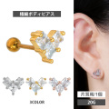 スクエアジュエル3粒で作られたカクカクデザインのハートモチーフストレートバーベル。 甘くなりがちなハートも、かわいくなりすぎない大人のハートデザインです。 太さは普通のピアスと同じ20Gなので、どなたでもお使いいただけます。 軸とボール部分はサージカルステンレス製ですが、モチーフは真鍮製ですので、アレルギーの強い方はお控えください。