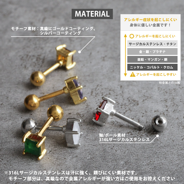 軸とボール部分はサージカルステンレス製ですが、モチーフは真鍮製ですので、アレルギーの強い方はお控えください。