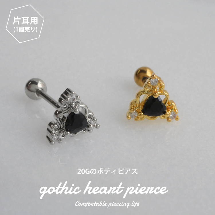 ブラックカラーのハートにゴシック調のフレームデザインが甘辛ミックスでおしゃれなストレートバーベル。