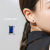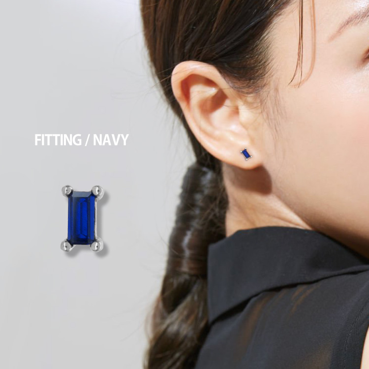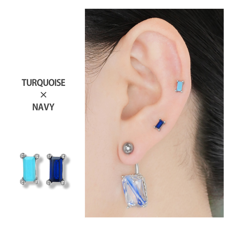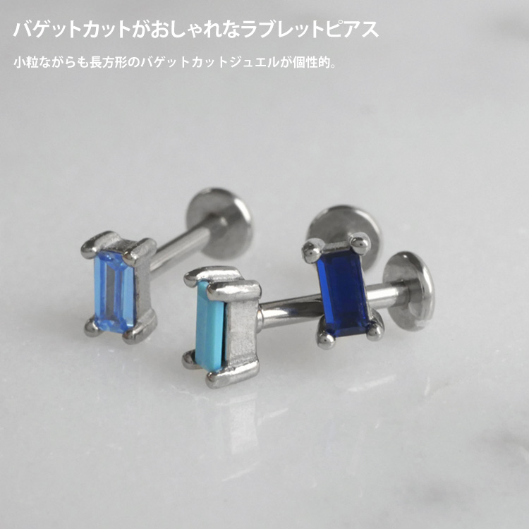 小粒ながらも長方形のバゲットカットジュエルが個性的なラブレットピアス。