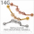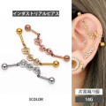 ジュエルのついたプチフラワーが可愛いインダストリアル。ホールの位置や角度を気にせず繋げて楽しめます。2つのピアスホールを繋ぐように着用してください。太さはボディピアスならではの14G。バーベルはアレルギーが起きにくいサージカル(医療用)素材なので、安心して使用できます。