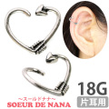 取り付けがカンタンでボールのないリングから可愛く射止めるキューピッドのハートモチーフが仲間入りしました。リング部分をひねって取り付ける、ユニークなスタイルが特徴のアニーリングシリーズ。ピアスとしてホールに通しても、挟みこむようにしてイヤーカフとしてもご使用いただけます。リングの太さは18Gになります。 ハートの矢が耳にキュンっと刺さるキュートなデザイン!個性的なモチーフで目を惹きます。ヘリックスなどの耳の軟骨部分に着ければディティールが一層引き立ちます!もちろん重ねづけもオススメです。ホールに触れるリングは安心のサージカル(医療用)ステンレス素材です。 ※リングを開く際には、前後にねじるように開きます。左右に開くと閉じにくくなり、変形する恐れがありますのでご注意ください。