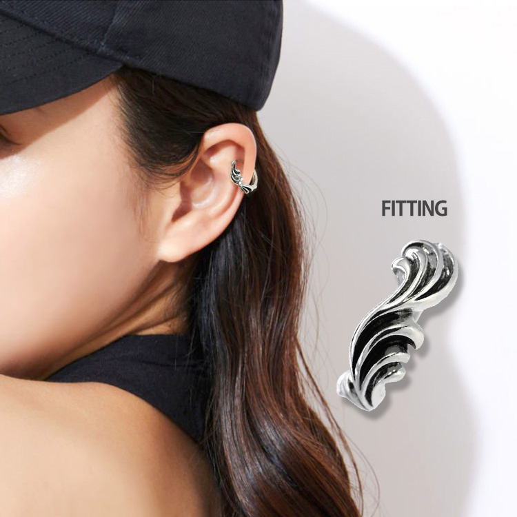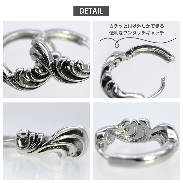 繊細で流れるようなデザインが、動きやセンスを与えてくれるアイテム。装飾の溝がブラックで立体的に見えるので、重すぎなく程良いボリューム感。ユニセックスなデザインなので、コーディネートにも合わせやすく、男性にもオススメですよ。太さは一般的なピアスと同じ細さの使いやすい20Gでボディピアス初心者さんも安心。ワンタッチ式で着脱も管理も簡単。材質は、「316Lサージカルステンレス」の上にシルバーでコーティングを施してあります。耳たぶピアス以外にも耳の軟骨ピアスに幅広くご使用いただけるデザインですよ。