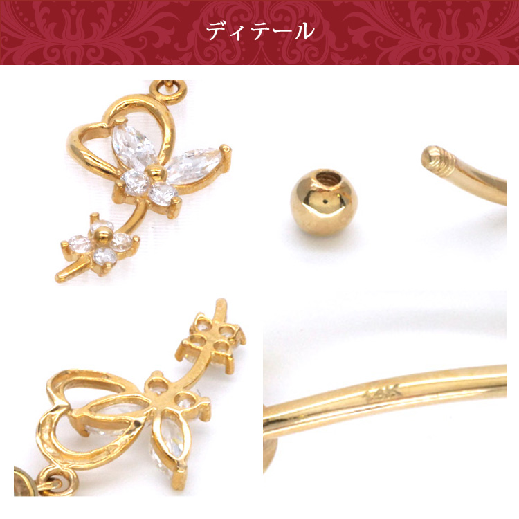 魅惑の最高級素材、14金ゴールド製おへそピアス。