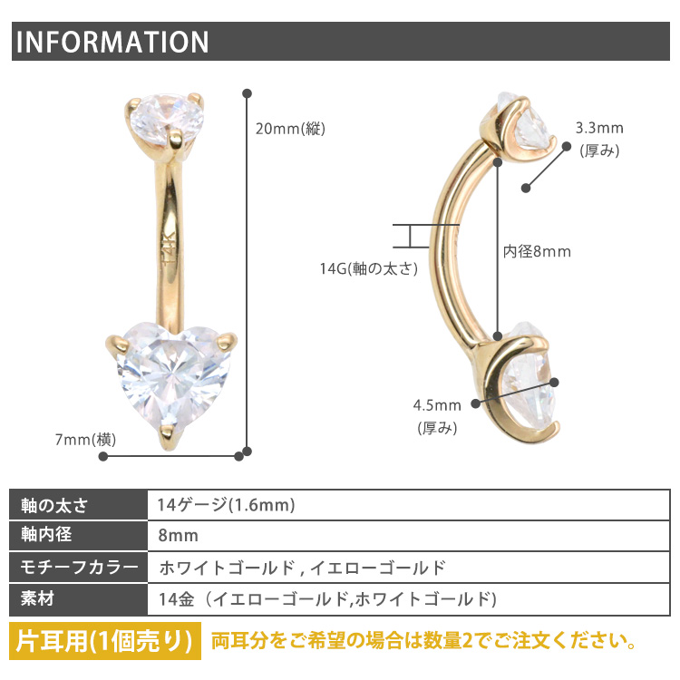 本物の輝きを毎日に取り入れたい方へ向けた、14金素材のインターナルタイプ・へそピアスです。
