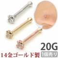 最高級の素材14金ゴールドがゴージャス!最近話題の鼻ピアス用ボディジュエリーです。先端にセットされた1.5mmサイズの立爪クリスタルが光ります!ヘッドが小さいので、いつでもとても自然につけられる、ひとつは持っていたい一品。シャフトがストレートのタイプなので、スクリュー型が苦手な人にもお勧めです。