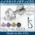 ボディジュエリーの上級者やプロも使用しているインダストリアル社製の最高級ジュエリー。 片側がディスクになっている定番のラブレットスタッド。 軽量でアレルギーの非常に起こりにくいサージカルチタン製です。 ヘッドには立爪セットされた4mmのスワロフスキークリスタルが最大限の輝きを放ちます。 太さは人気の14Gと16G。耳たぶはもちろん、軟骨部位にもなじむので、とても使いやすい一品。 ディスク側も外れて組み合わせも自由自在。すべてインターナル(内ネジ)構造なので、ホールに負担も最小限におさえることができます。 ジェム(ジュエル)のカラーはクリア、ピンク、タンザナイト、シャンパン、ブラックの5色よりお選び頂けます。 また、内径(長さ)も6mmと8mmからお選び頂けます。 もちろんファーストピアスにもお勧めです。
