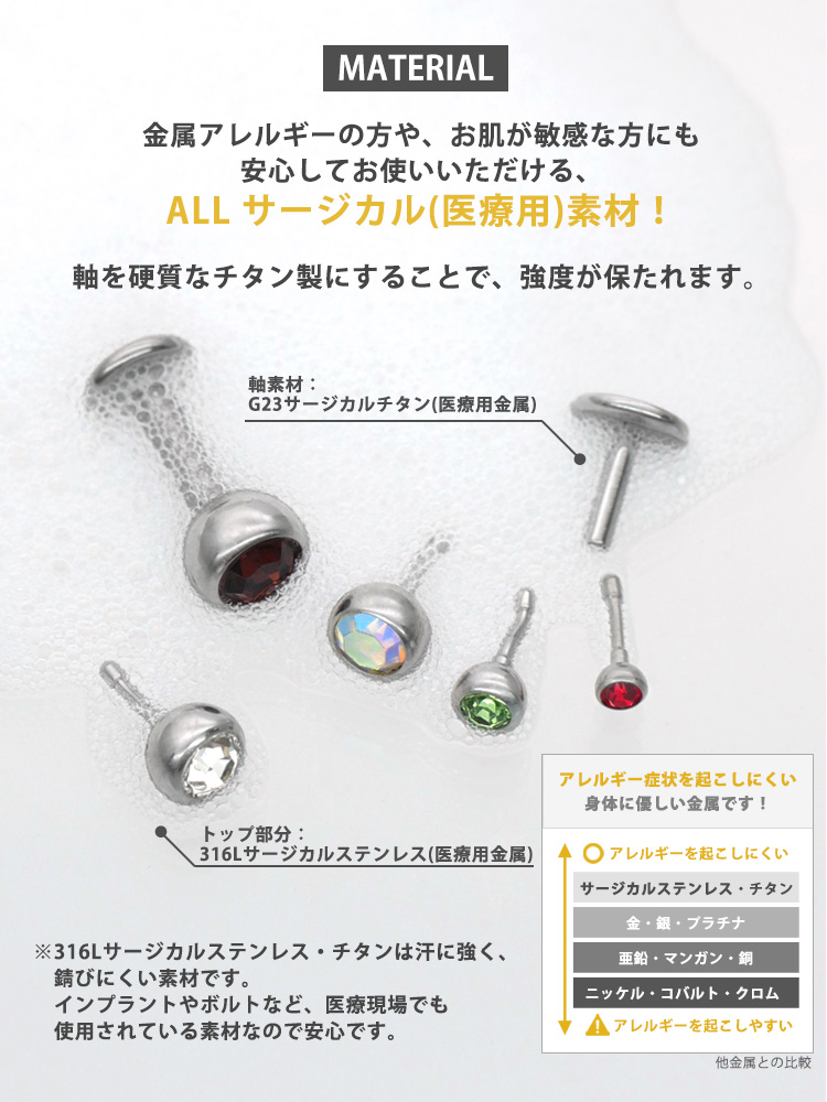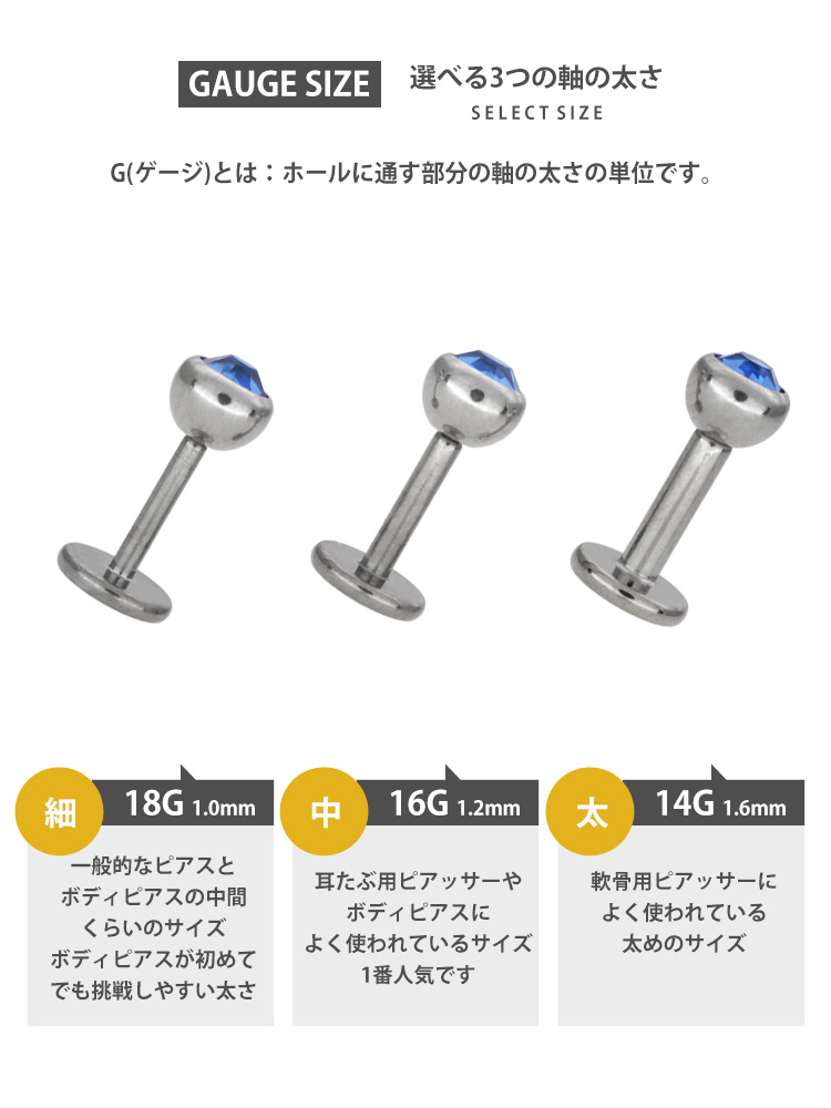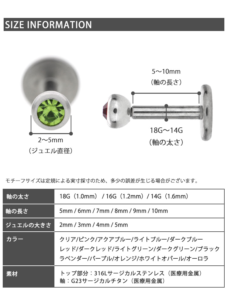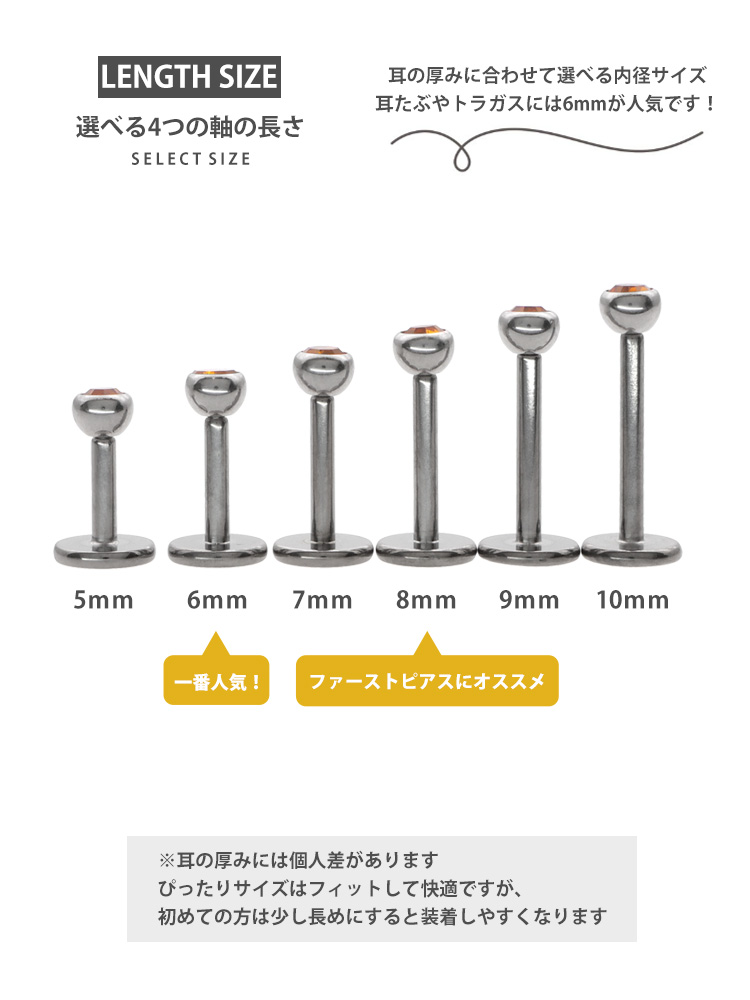 内径(軸の長さ)や太さ、ジュエルサイズが豊富になり、より一層あなたにピッタリのジュエリーに進化しました。