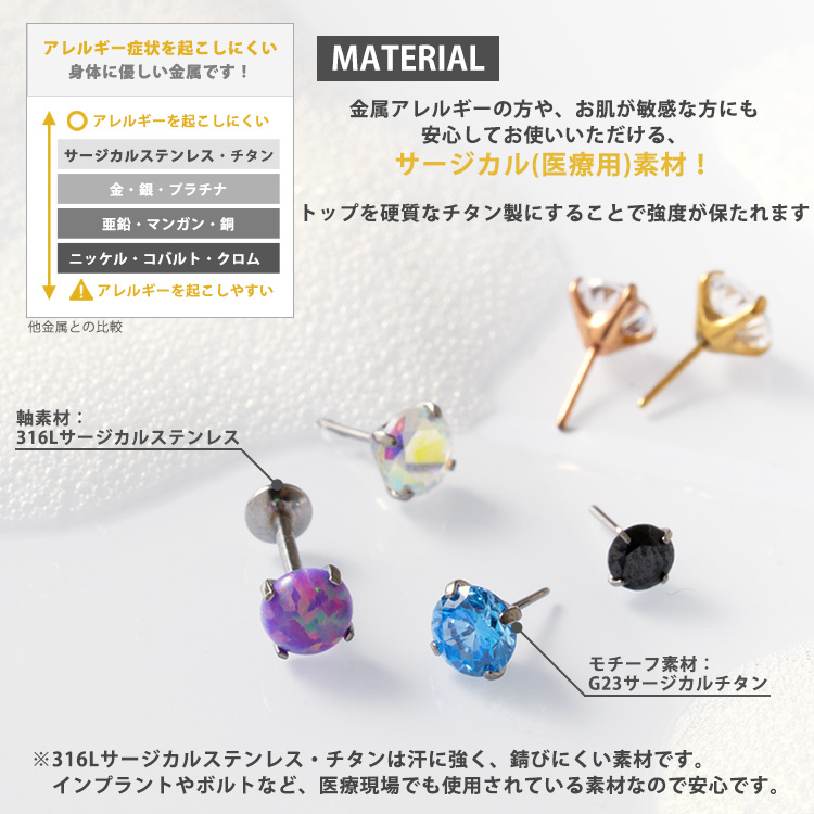 摩擦の力でパーツが外れないプッシュピンピアス