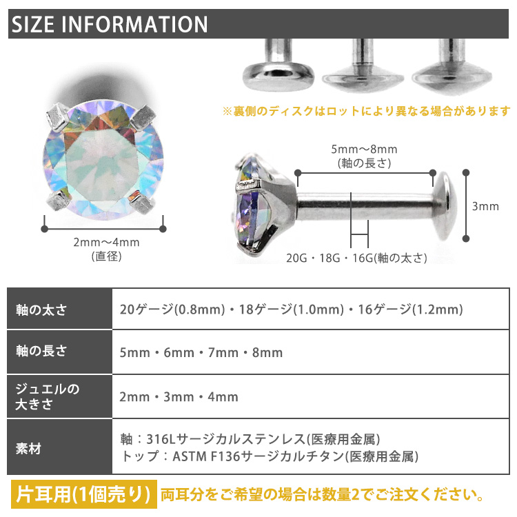 ジュエル:2mm・3mm・4mmから選択できます