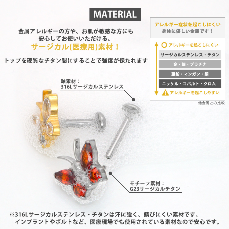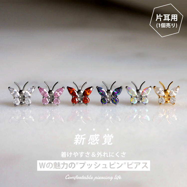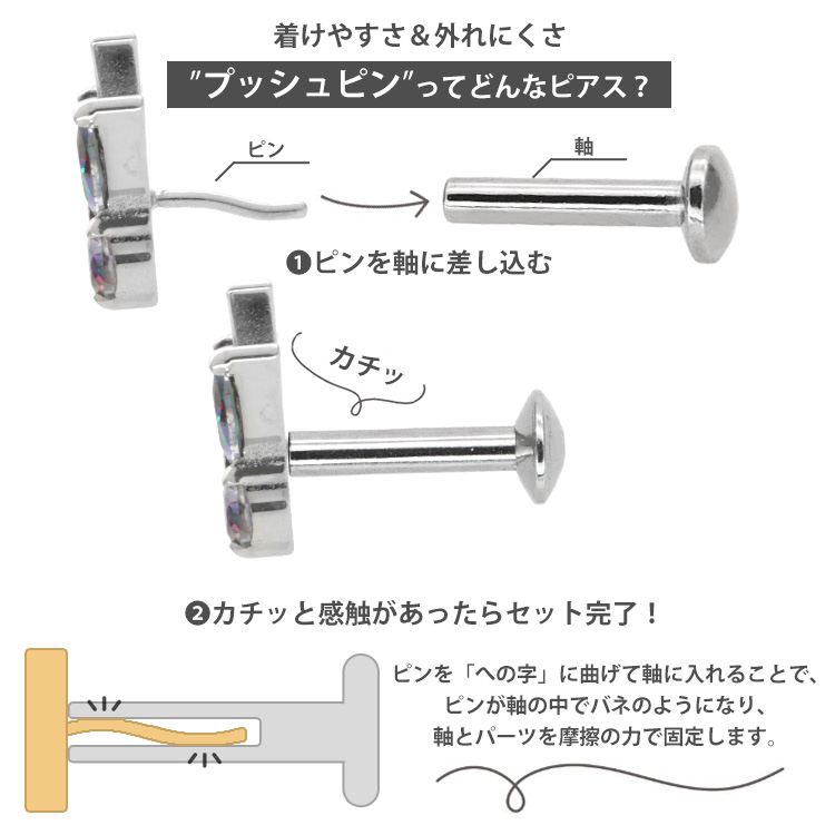 摩擦の力でパーツが外れないプッシュピンピアス