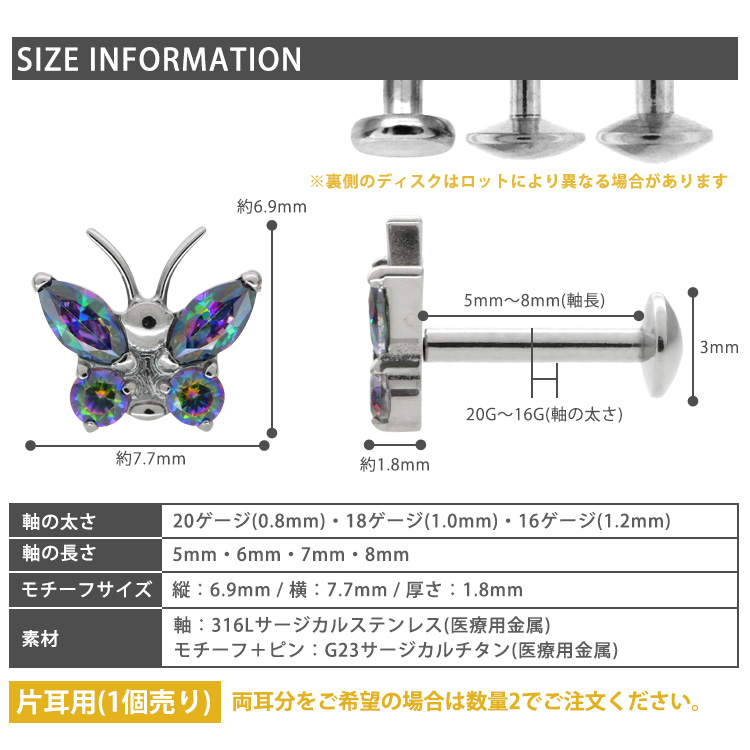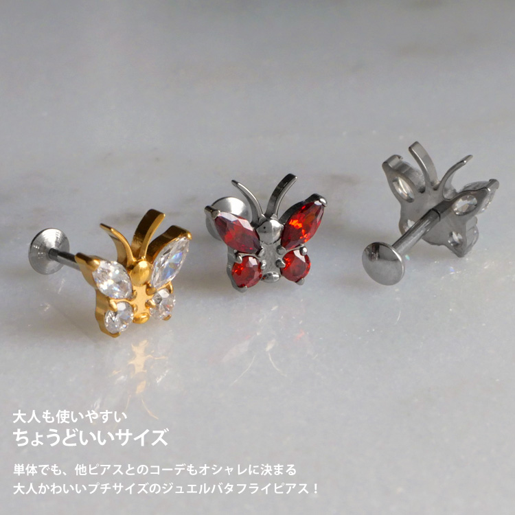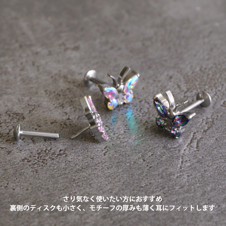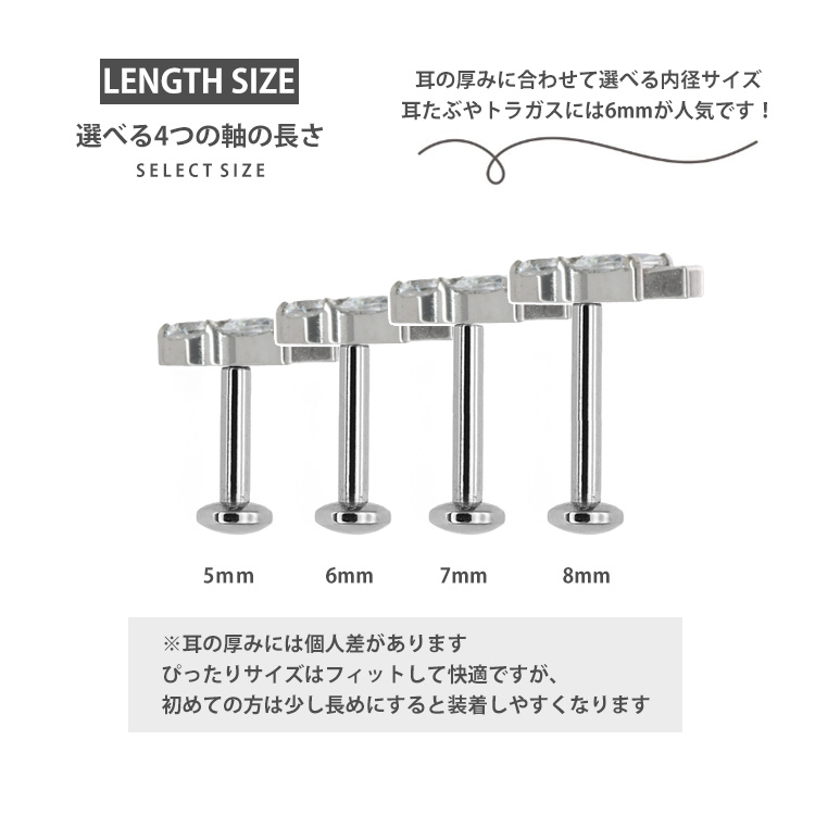 ボディピアスの定番アイテム、ラブレットスタッドがワンプッシュタイプの斬新設計に。 ありそうでなかった、ネジ不使用のボディピアスが登場。トラガスのような狭い部位や、ネジタイプが苦手な方には特にお勧めです。 ヘッド部分から伸びるピンを軸に差し込めば装着完了です。ネジが無いので、知らない間に緩んできて失くしてしまった、そんな悩みからも開放されます。