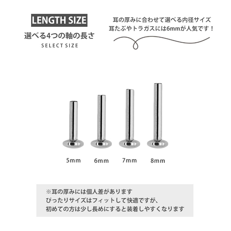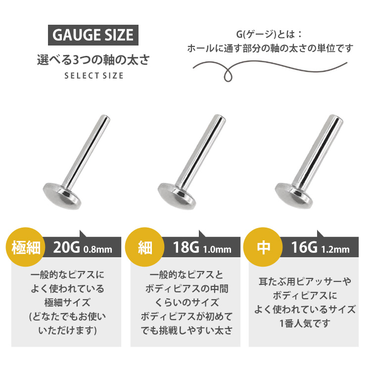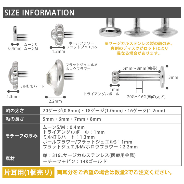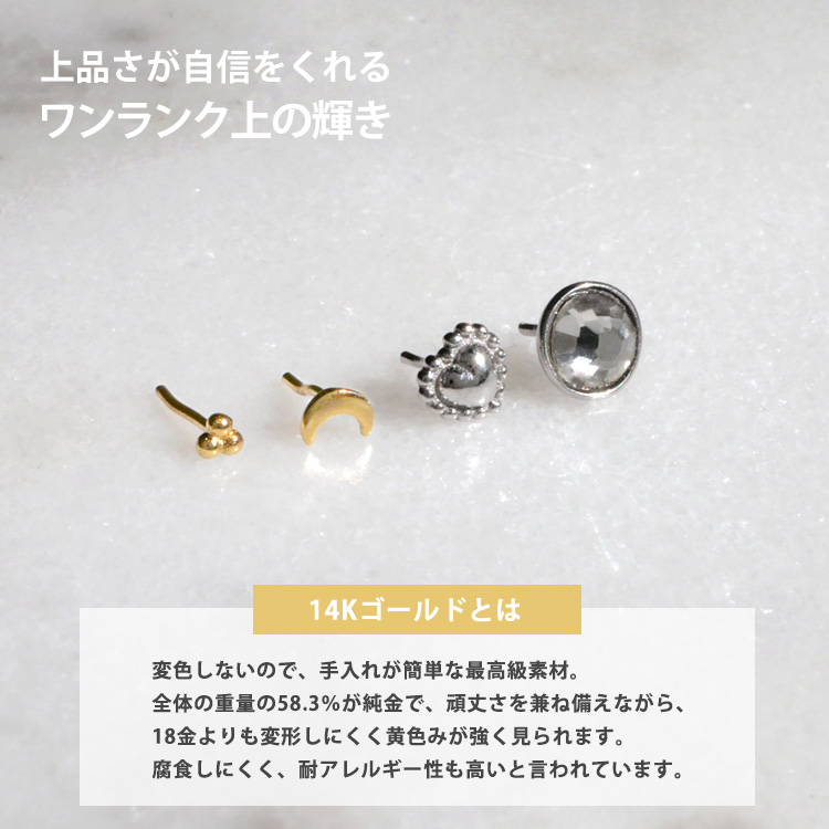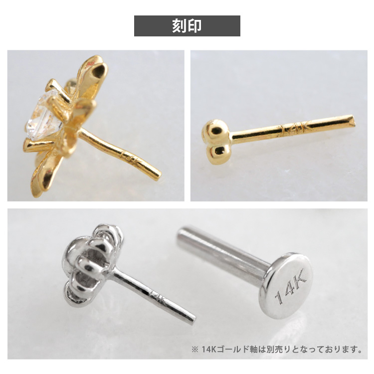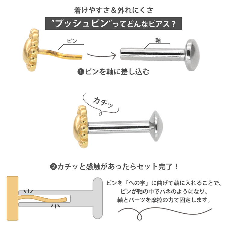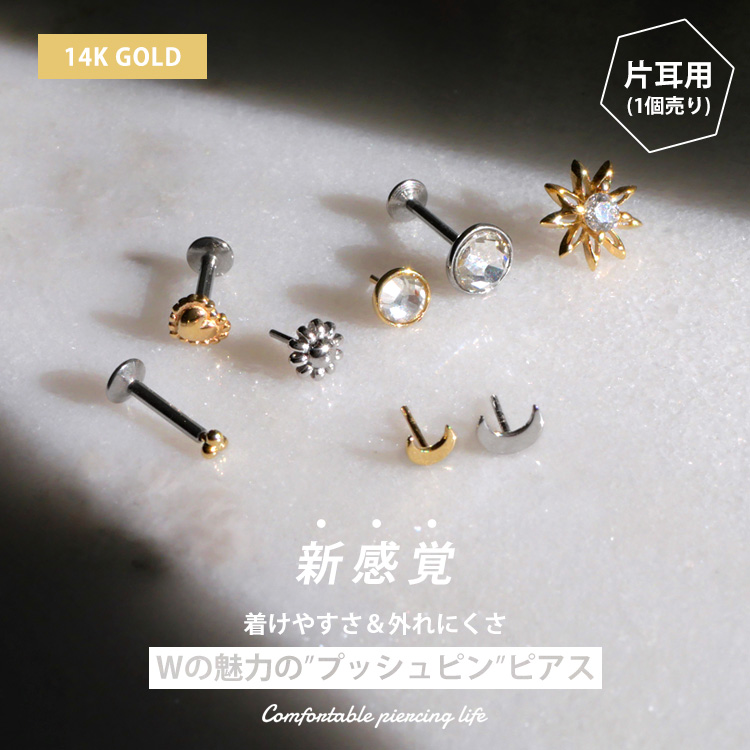 【ネジ不要/摩擦でロック】つけっぱなしピアス ボディピアス 20G 18G 16G 【ケース付】 14金 14Kゴールド プッシュピンラブレット トラガス 軟骨ピアス LSPG-MOTIF