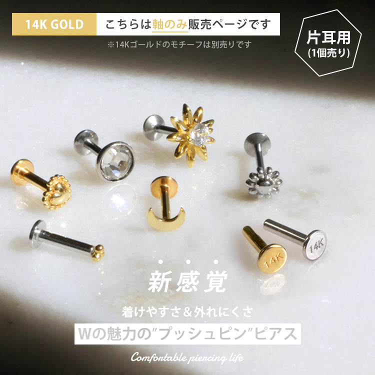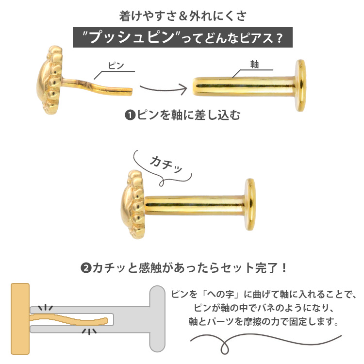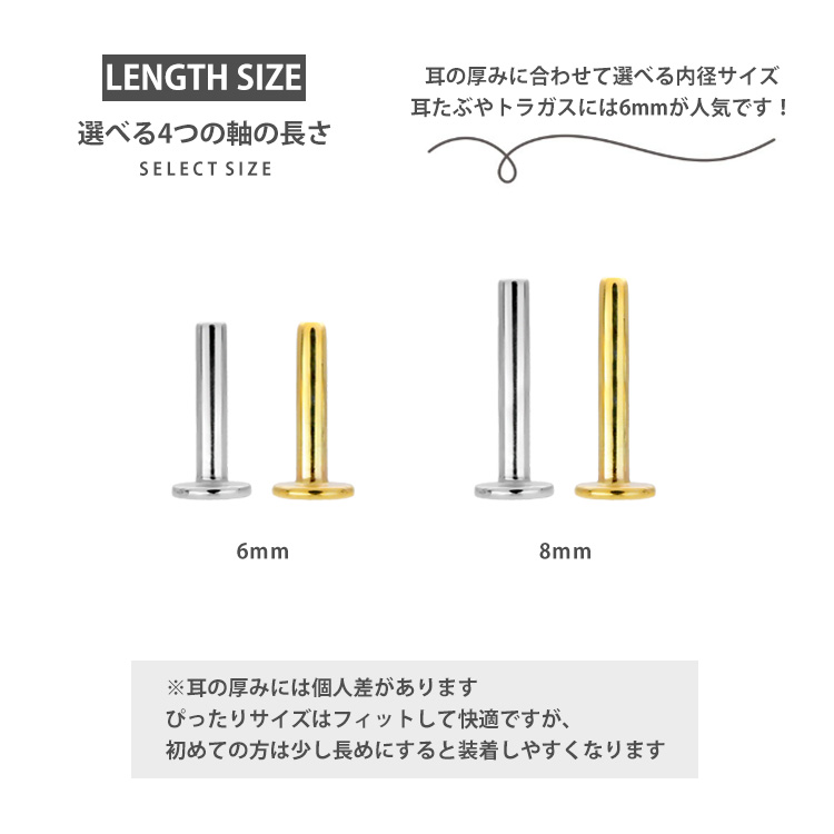 【ネジ不要/摩擦でロック】つけっぱなしピアス ボディピアス 18G 16G 14金 プッシュピンラブレット軸パーツ トラガス 軟骨ピアス LSPG-SHAFT