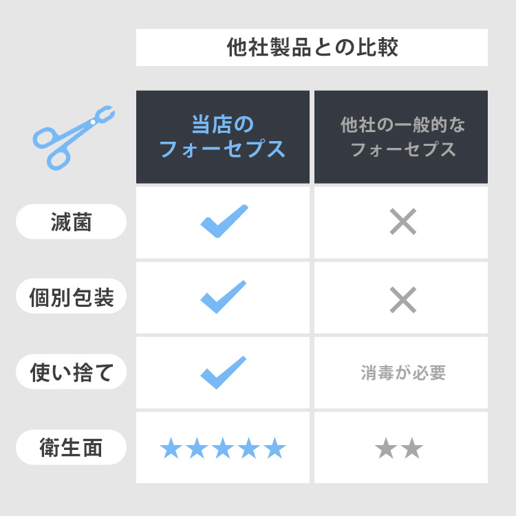 1本ずつ個別に滅菌パックされており、 開封後すぐに使用できるため、衛生管理の手間を軽減。