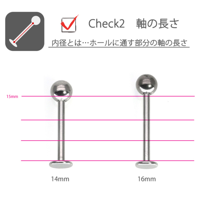 [カスタム] ボディピアス ロングラブレットスタッド 16G 14G ボディーピアス 軟骨ピアス 舌ピアス ヘリックス LABRETSTUD-LONG