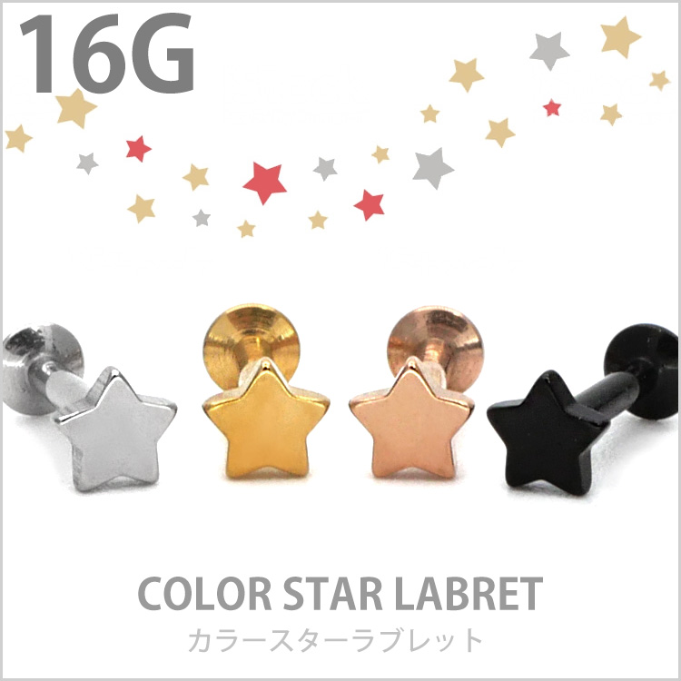 ボディピアス カラースターインターナルラブレット 16G ボディーピアス 軟骨ピアス 星 LSI10
