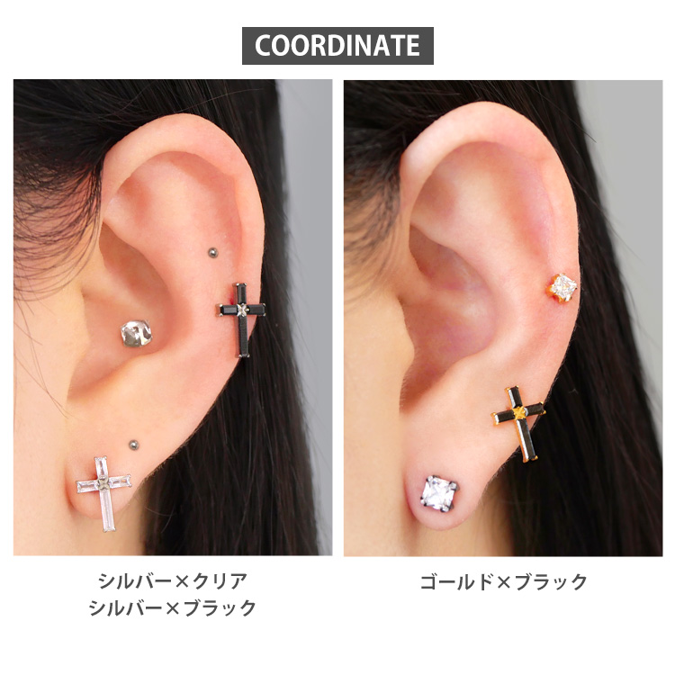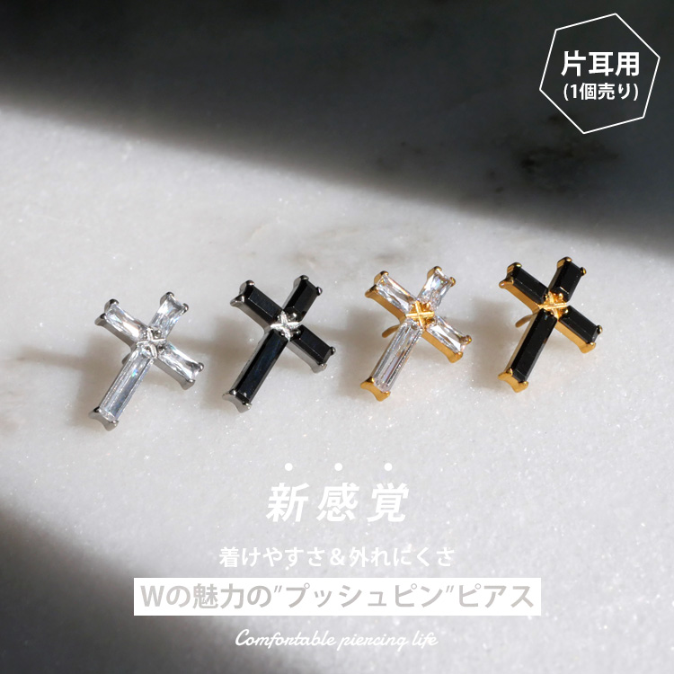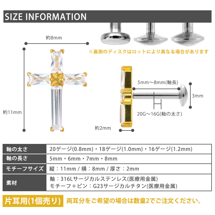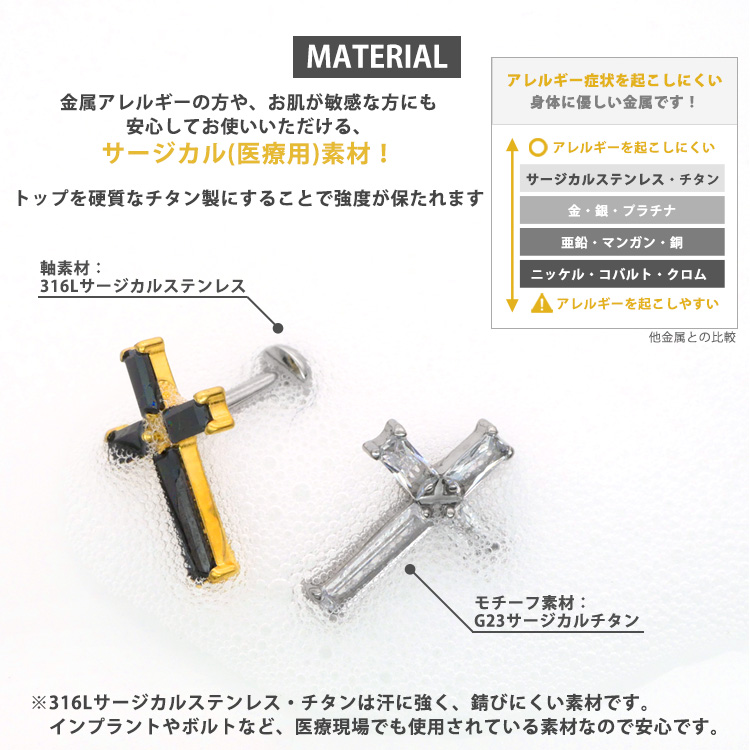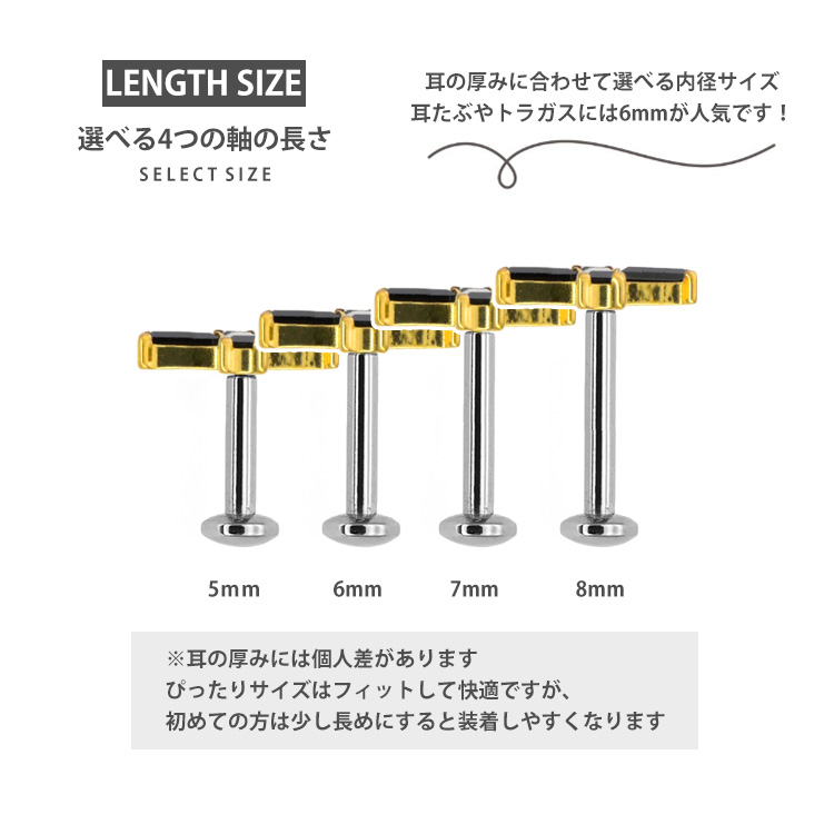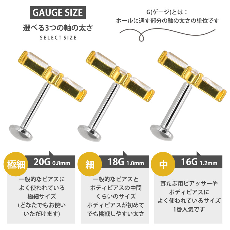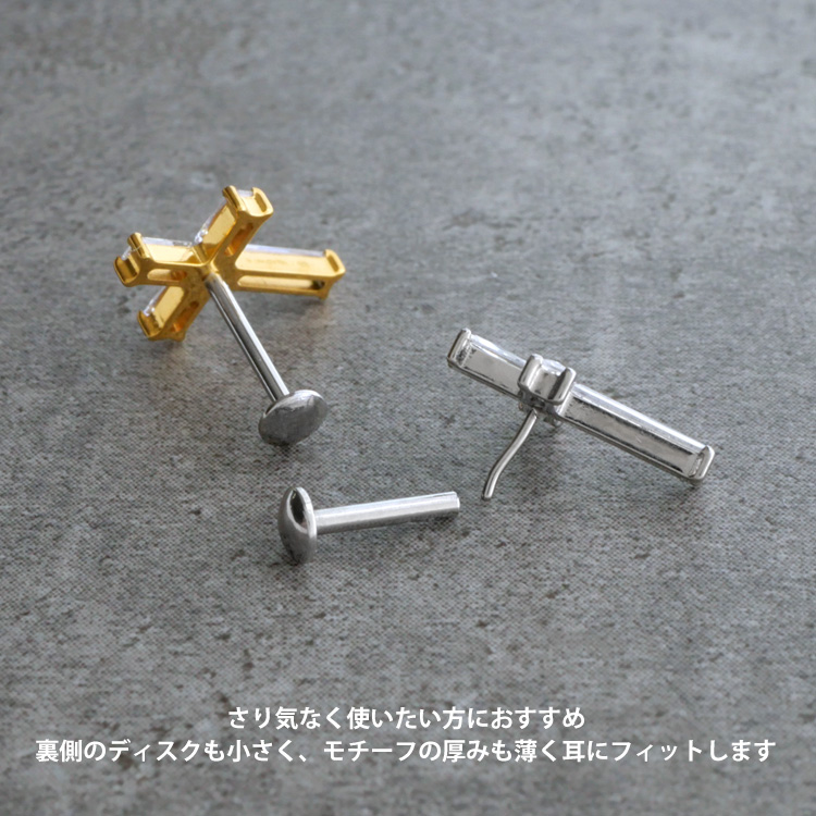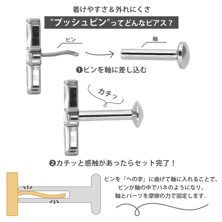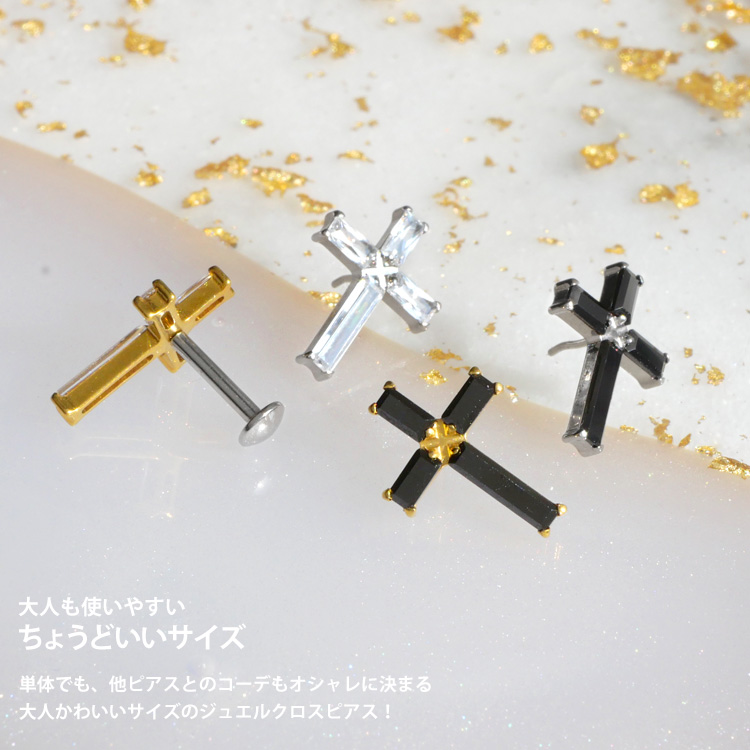 【ネジ不要/摩擦でロック】16G 18G 20G バゲットカットジュエルクロスプッシュピンラブレット LSP521