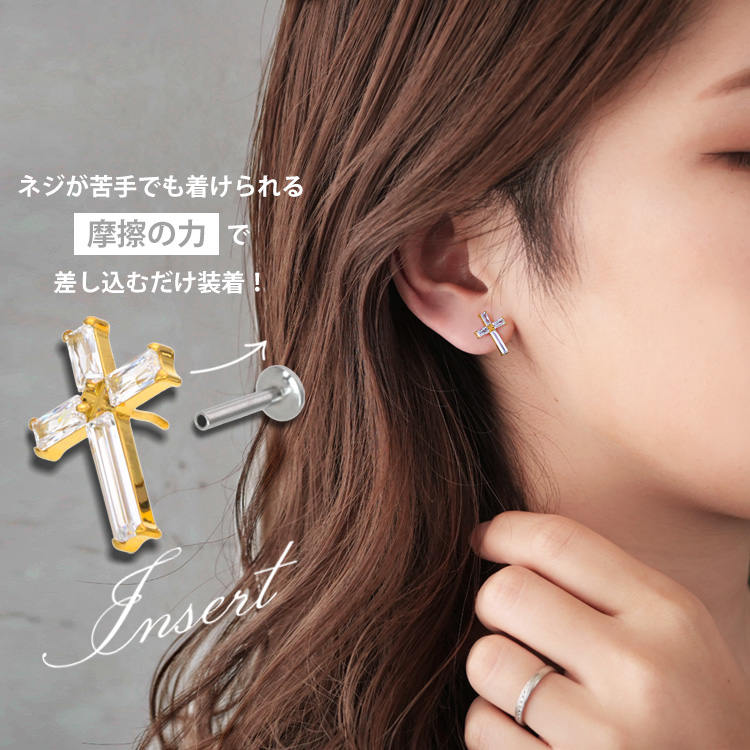 ネジを回す必要がないため、トラガスなどの狭い部位でも簡単に装着できます。