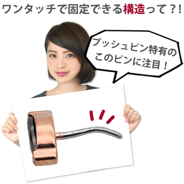 ・「小さなネジを回すのが苦手」「ネジが緩んで外れないか不安」そんな悩みを解消するプッシュピン(押し込み式)タイプ。ピンを差し込む際の摩擦で固定されるため、装着が驚くほど簡単です。