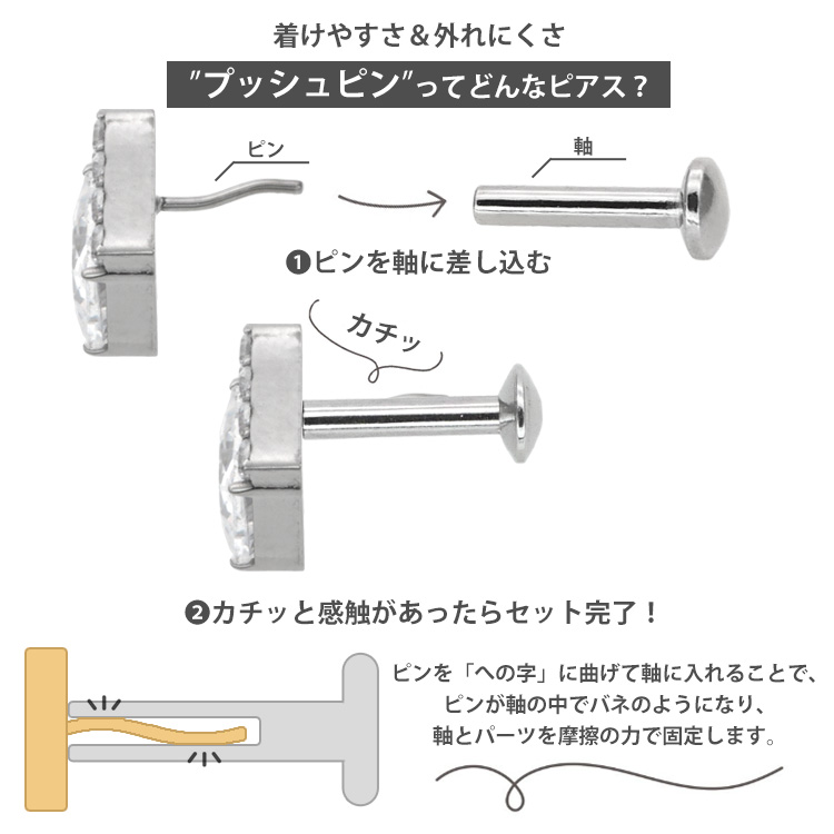 ・トラガスのような指が入りにくい部位や、ネイルを楽しんでいる方にも特にお勧め。一度着ければ、知らないうちにパーツを紛失するストレスからも解放されます。
