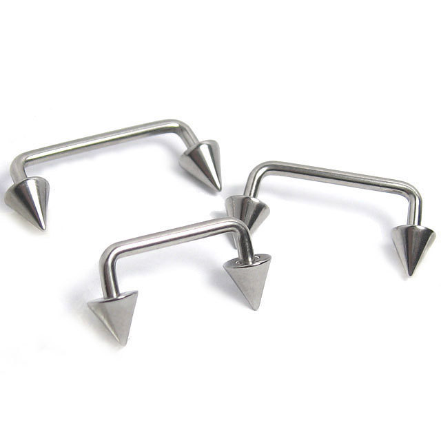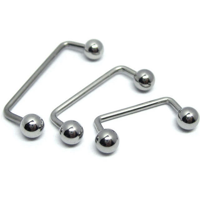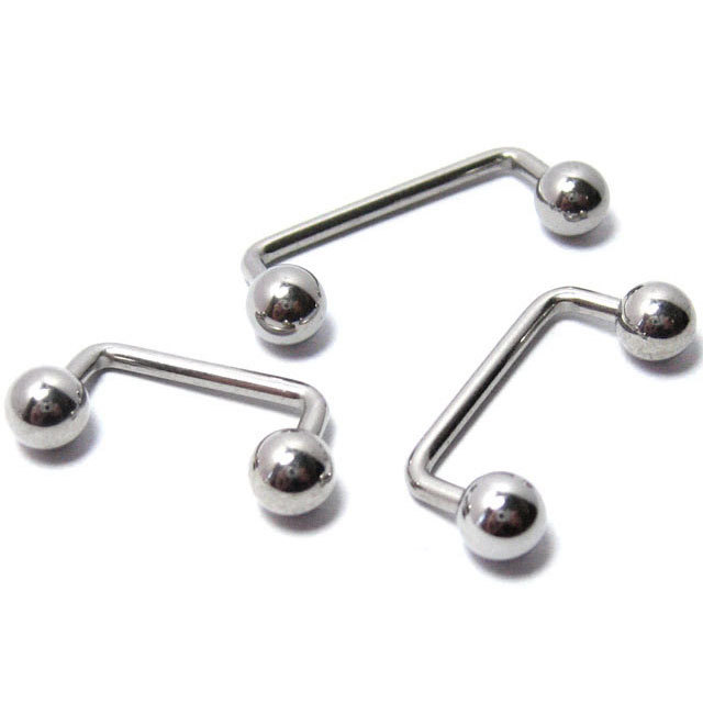 ネイプ、スターナム、リスト、マディソンなど、最近特に人気の高い表面皮膚ピアッシングに使用するためにデザインされたボディピアスです。ライズ(コの字部分に立ち上がったシャフトの長さ)は直角で、最も使いやすいタイプです。サーフェースバーベルによって、今まで負担が大きいために排除されやすかった部位の安定度がぐっと高くなりました。アレルギーが起きにくいサージカルステンレス素材なので、安心して使用できます。16Gと14Gの2種のゲージサイズと2種のヘッドタイプ各サイズから、部位とお好みに合わせてカスタムが可能です。
