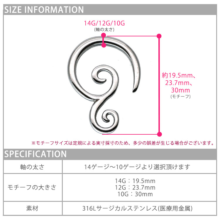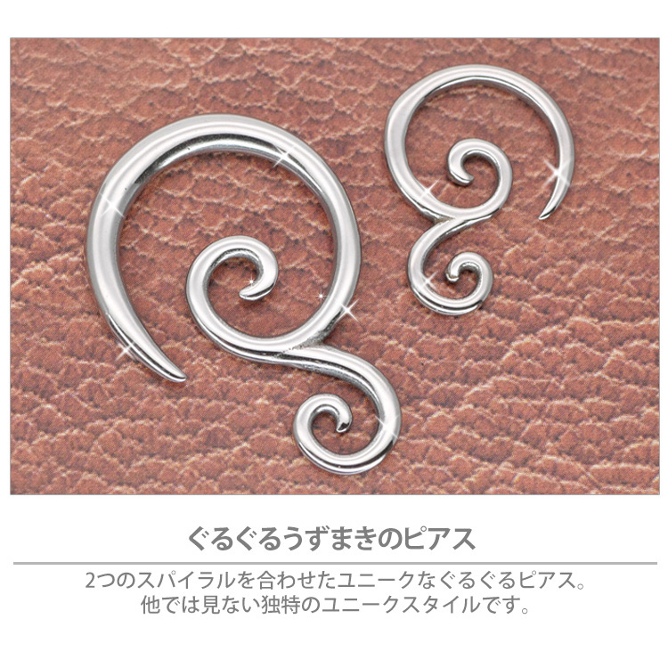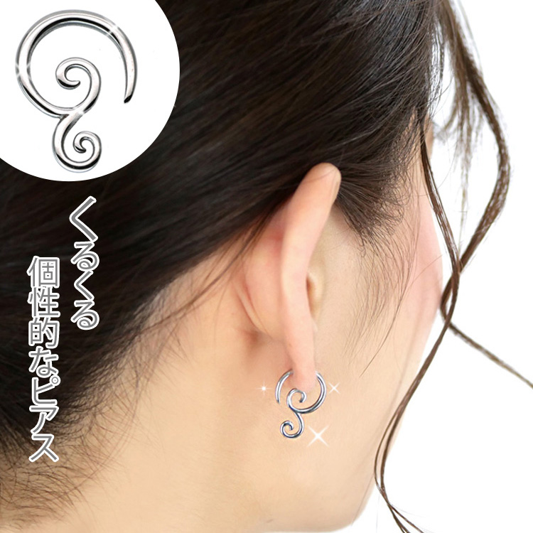 ボディピアス 渦巻き模様のダブルスクロール 14G 12G 10G ボディーピアス 軟骨ピアス TSPR21